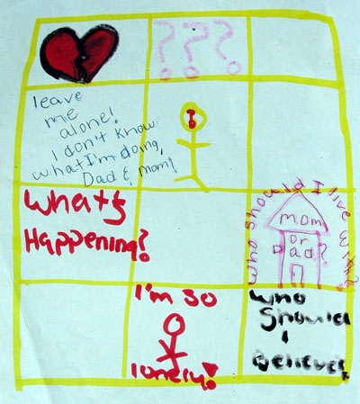 style much as an engineer would chart a problem. In the squares she filled in problems facing a child of divorce.